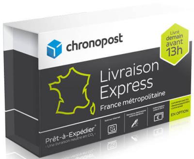 Chronopost express permet une livraison dès le lendemain matin en France métropolitaine ! Si ce transporteur est disponible, il vous sera proposé dans la liste des modes de livraison fin de commande.
