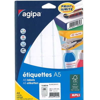 pour imprimante jet d'encre/laser et photocopieuses, adhésif permanent, coins arrondiscontenu : 320 étiquettes sur 16 feuilles A5-114014