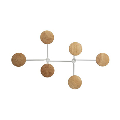 6 crochets, capacité de charge par crochet : 5 kg, diamètredu crochet : 9 cm, forme solide, ronde, dimensions : (L)280 x(P)70 x (H)120 mm, acier et bois, avec matériel de fixation,couleur : blanc / hêtre(PMSIX BC)