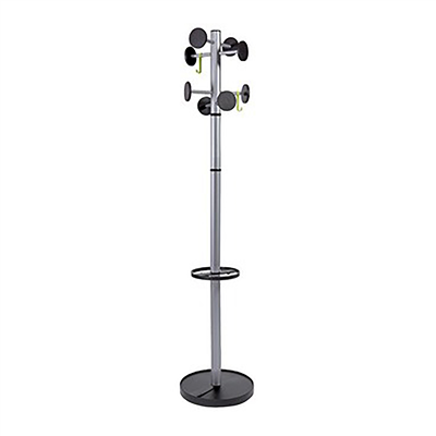 avec 8 patères en plastique ABS noir, 2 crochets en plastique amovibles, avec anse à parapluies intégrée, socle lourd,avec égouttoir, diamètre : 350 mm, poids : 9 kg, en acier,(H)1.750 mm(PMSTAN3 M)
