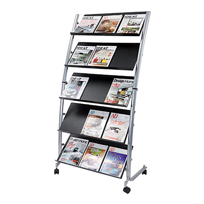 5 étagères pour 15 documents de A4 à 240 x 320 mm, structure en métal, étagères en plastique, avec 4 roulettes avec frein dimensions du présentoir : (L)820 x (P)510 x (H)1.660 mm,dimensions d'une étagère : (L)720 x (P)30 x (H)330 mm(DD5GM)