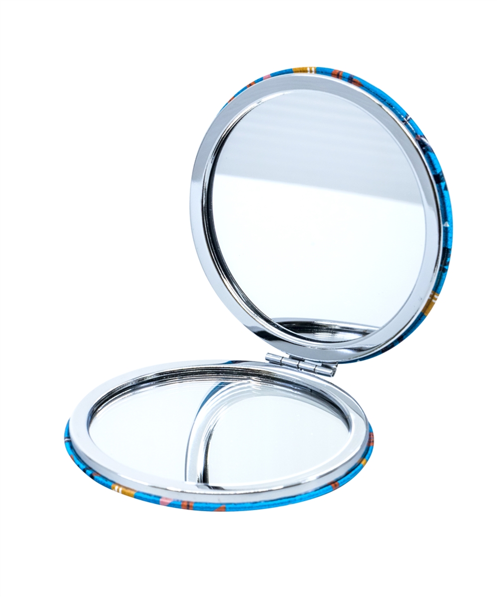 PLUMETIS - Miroir citron Impression couleur sur simili cuir. Double miroir intérieur.
