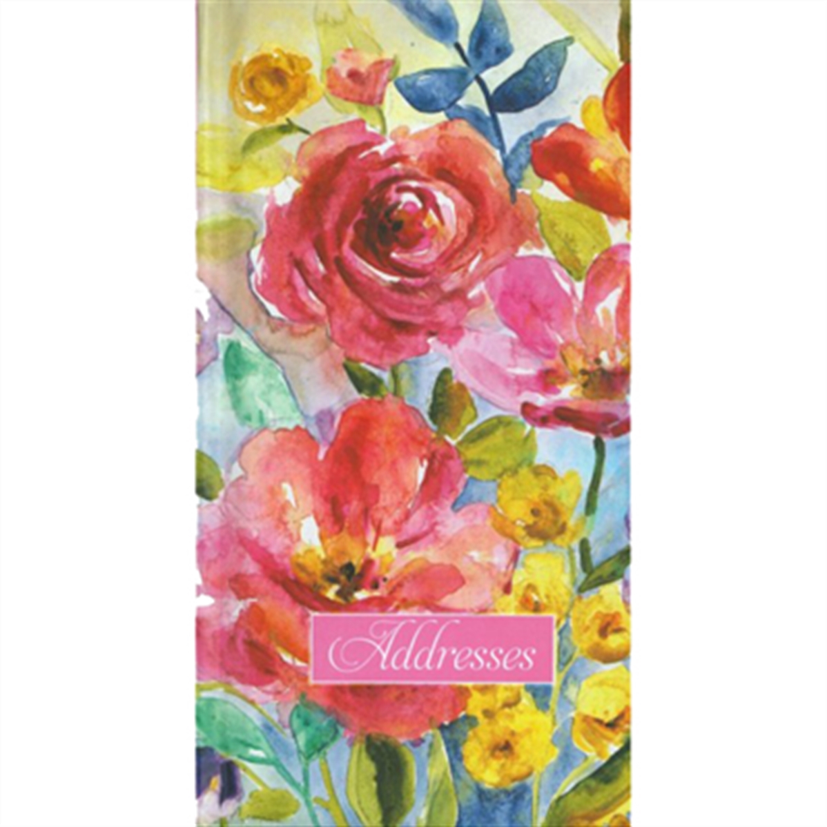Carnet d'adresses Illustré par Carol Robinson avec couverture rigide ornée de fleurs : coins carrés; Index de pouce AZ. Le papier de couleur rose est un papier résistant à l’encre, 100 g / m², sans acide, qui prend très bien tous les types d’encre. 90 x 170 mm. (Royal Garden)
