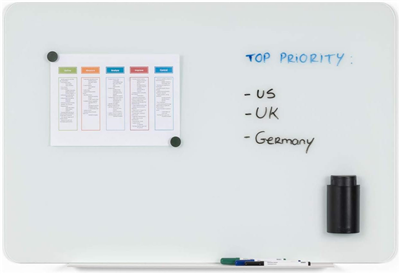surface d'écriture lisse, magnétique, effaçable à sec,verre trempé pour plus de sécurité, avec plumier(GL070101)