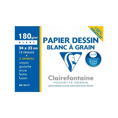 Clairefontaine Papier dessin "Blanc à Grain", pack promo