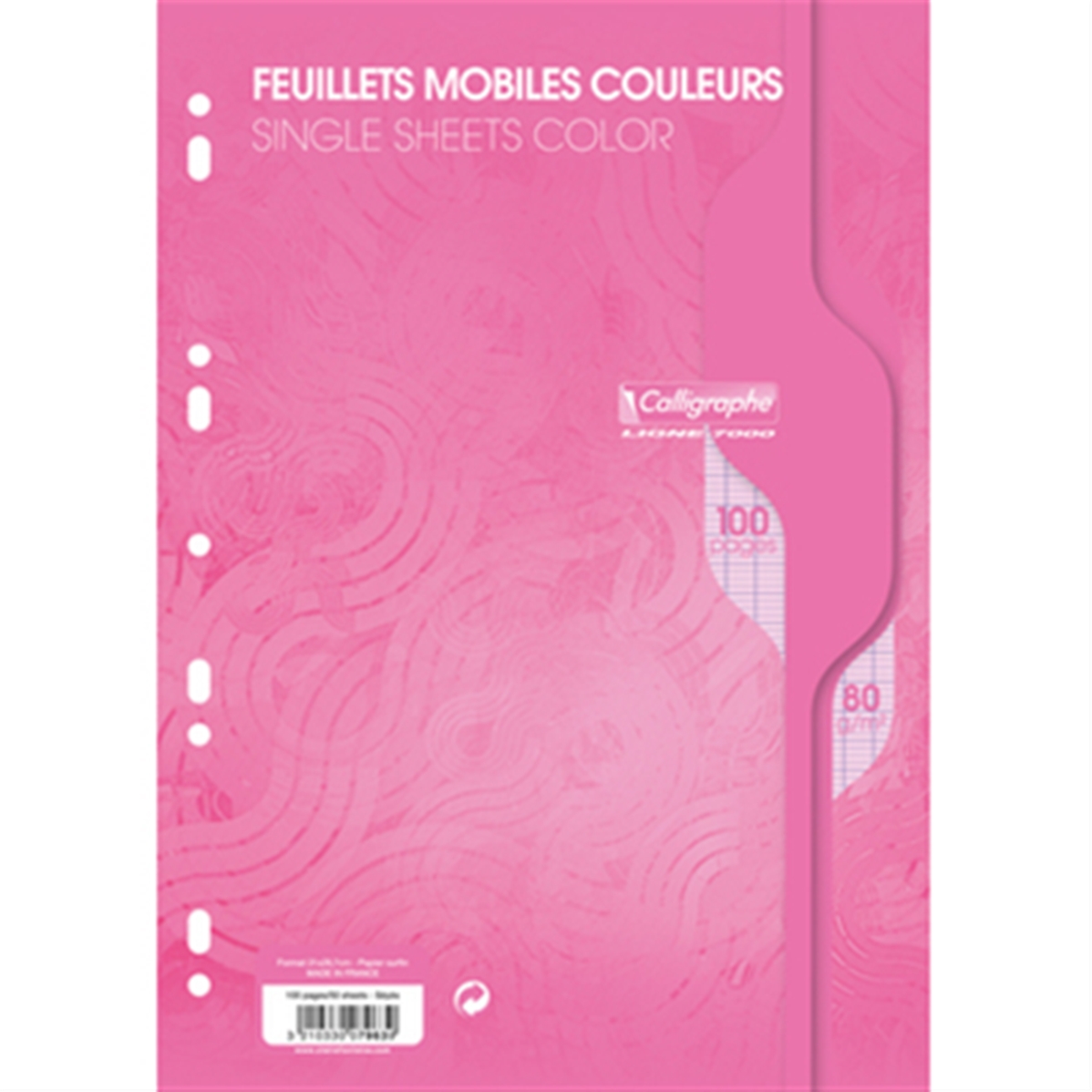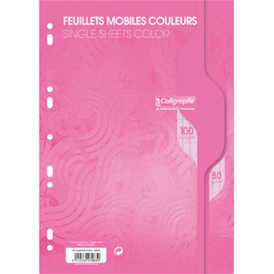 Feuillets mobiles 21x29,7 cm 100 pages grands carreaux roses 80g - Sous étuis Calligraphe