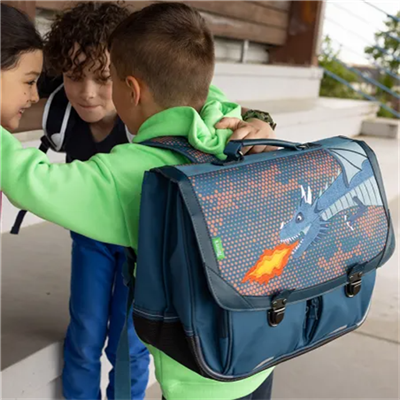 Le cartable doit être près de la colonne vertébrale. Mettez les livres près du dos de votre enfant et des objets légers dans la poche avant de votre cartable ou sac à dos. Nous déconseillions le cartable à roulettes en raison  qu'il n'est pas adapté aux escaliers. Nous recommandons également de ne pas choisir un cartable à roulettes plus lourd d'1 kg. Le sac à bandoulière présente le problème d'une répartition du poids sur une seule épaule. Cela implique que si la charge est déséquilibrée d'un côté, les muscles du dos de l'autre côté seront restreints. Les habitudes persistent. Si on commence dès l'école primaire, la souffrance persiste jusqu'au lycée.