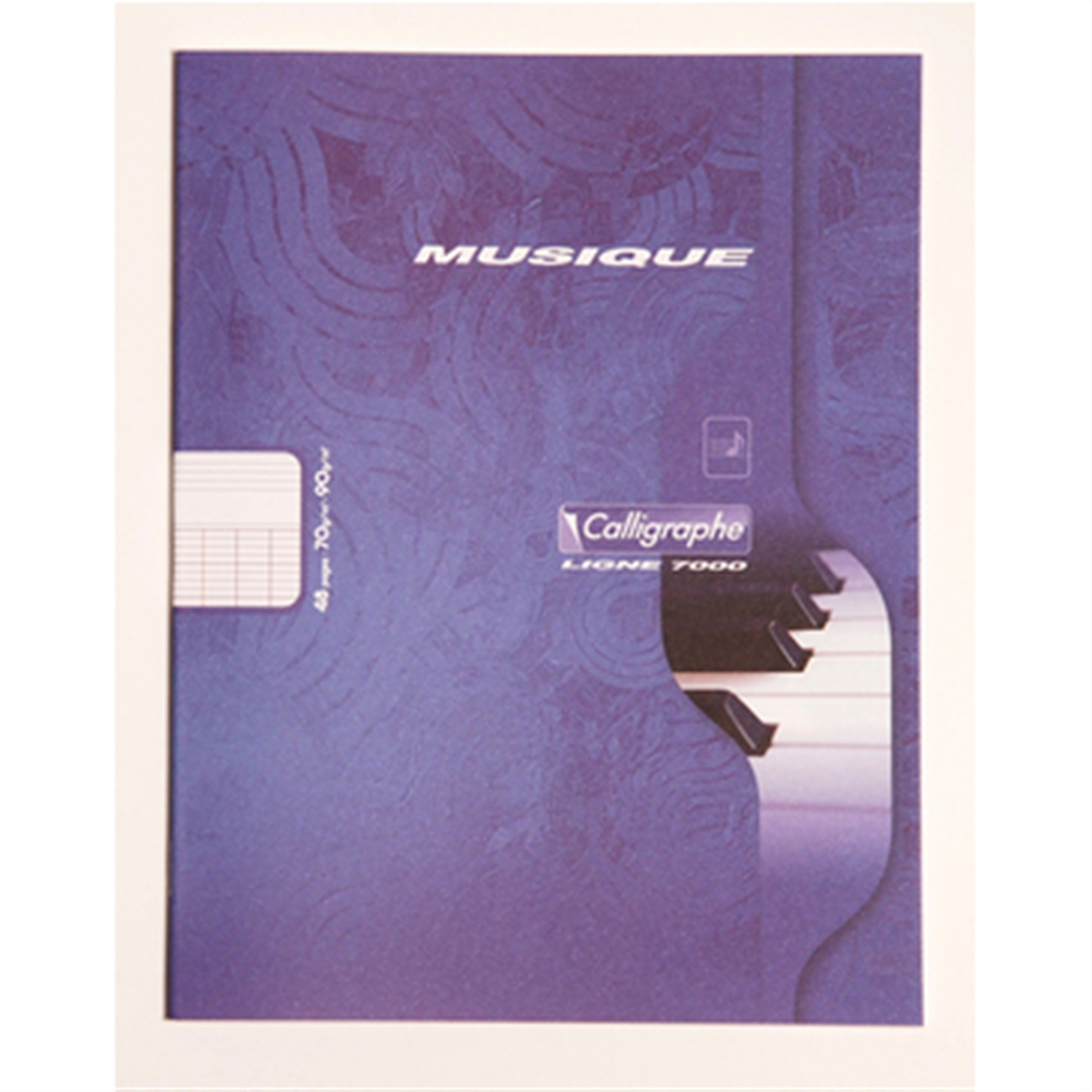 Le cahier piqué écologique Musique et Chant format A5 à grands carreaux (seyes) est fabriqué en France par CLAIREFONTAINE pour sa marque de cahiers écologiques Calligraphe.