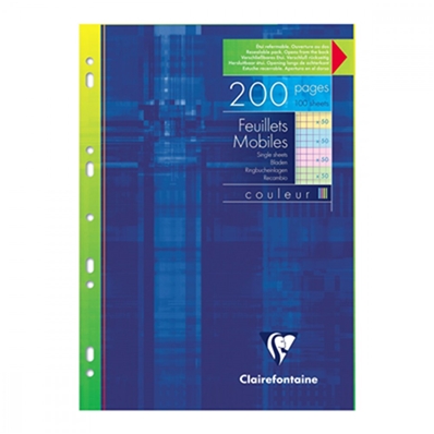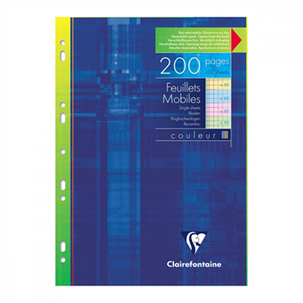Feuillets mobiles couleur s/étui 21x29,7 200p (50x4 couleurs assorties) Q.5x5
