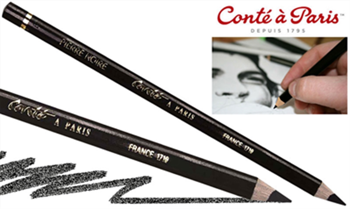 Le  crayon Pierre Noire de Conté à Paris est tendre, d'un noir intense, profond, indélébile et mat. Il est très apprécié pour son utilisation "tous supports" : bloc croquis, papier Kraft, toile de lin.