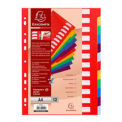 en PP, premier index imprimé, onglets à coloris vifs etinscriptibles, perforation euro(4912E)