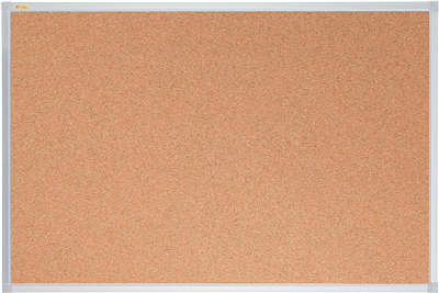 tableau avec surface en liège marron, cadre en aluminiumavec coins en plastique gris clairs, matériel de fixationmurale grâce aux crochets de suspension miroir ouaux coins(KT3402)