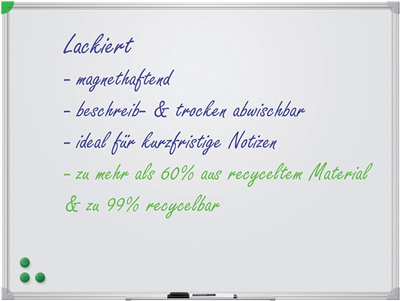 magnétique, inscriptible, nettoyable à sec, cadre enaluminium anodisé argenté avec angles en plastique grisclair/vert, auget et matériel de montage inclus, matérielrecyclé à 60%, couleur de la surface inscriptible : blanc(SC914060)