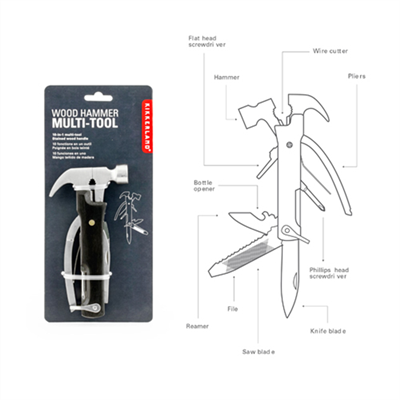 Kikkerland Outil Multifonctions avec Marteau Manche en Bois naturel