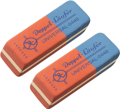 mi-souple, dimensions de la gomme : (L)55 x (P)19 x (H)8, 5 mm gomme bicolore : côté rouge pour les crayons de papier, copie et couleur, côté bleu pour les encres,contenu : 2 pièces-69804
