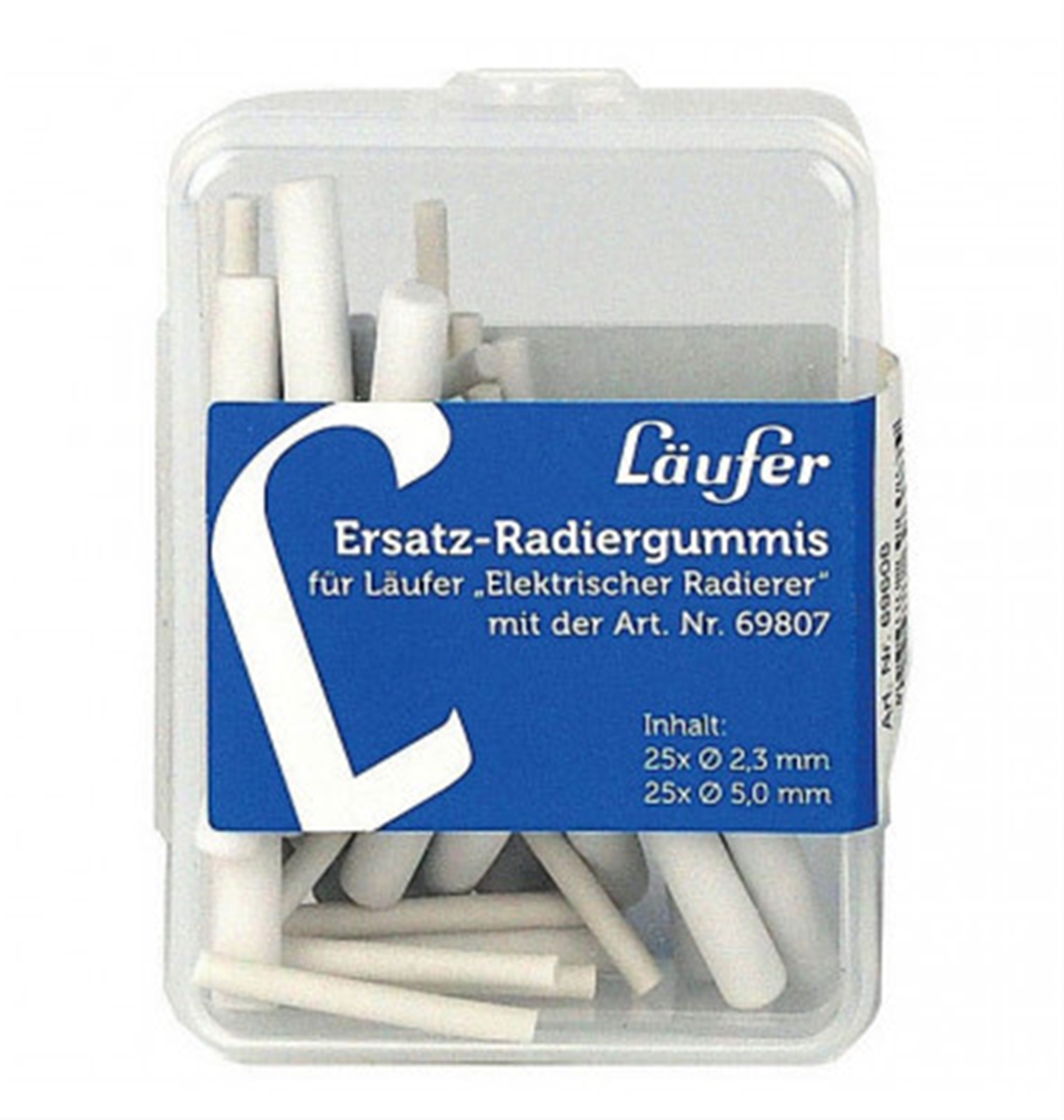 boîte refermable, contient 50 gommes en plastique : 25xtaille 2, 3 x 25 mm et 25x taille 5 x 25 mm, blanc-69608