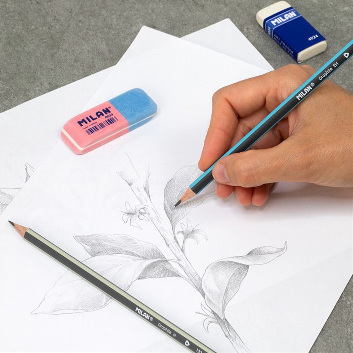 Crayons graphite 2H. Mine de 2 mm Ø. Forme triangulaire ergonomique. Le crayon graphite 2H est dur, ce qui permet des lignes fines et techniques.