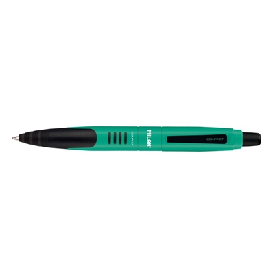 Stylo COMPACT vert. Longueur d’écriture approximative de 1000 mètres. Pointe 1 mm. Encre fabriquée en Allemagne. Poussoir à retour. Design original conçu par le département R+D de MILAN. Dimensions du stylo: 14.1 x 1.7 cm. 1.4 cm Ø.