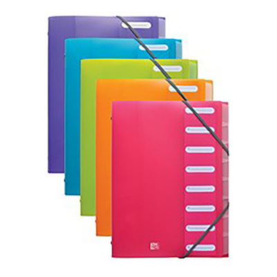 feuilles de séparation transparentes, fermeture à élastique,rabat de fermeture depuis le dos, feuille d'indexationpersonnalisable, zone de préhension striée, coloris assortis -400006531