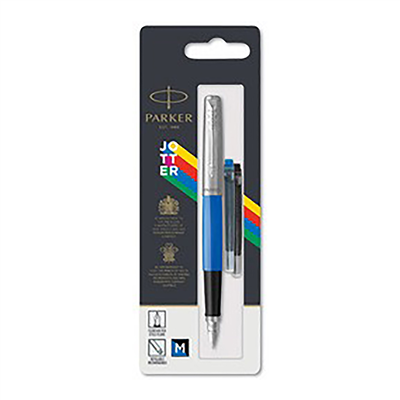 taille de plume : M, couleur de tracé : bleu, attributs, plume et capuchon en acier, corps en plastique laqué, avec système de cartouche, cartouche inclussous blister-2096858