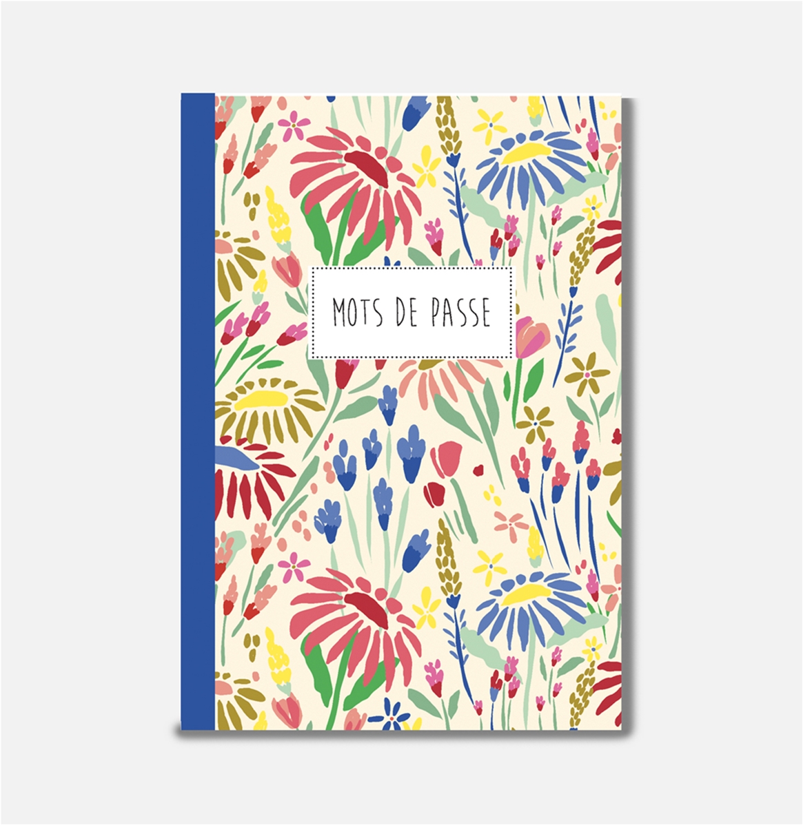 Pascale Éditions Carnet mots de passe Bleu avec fleurs