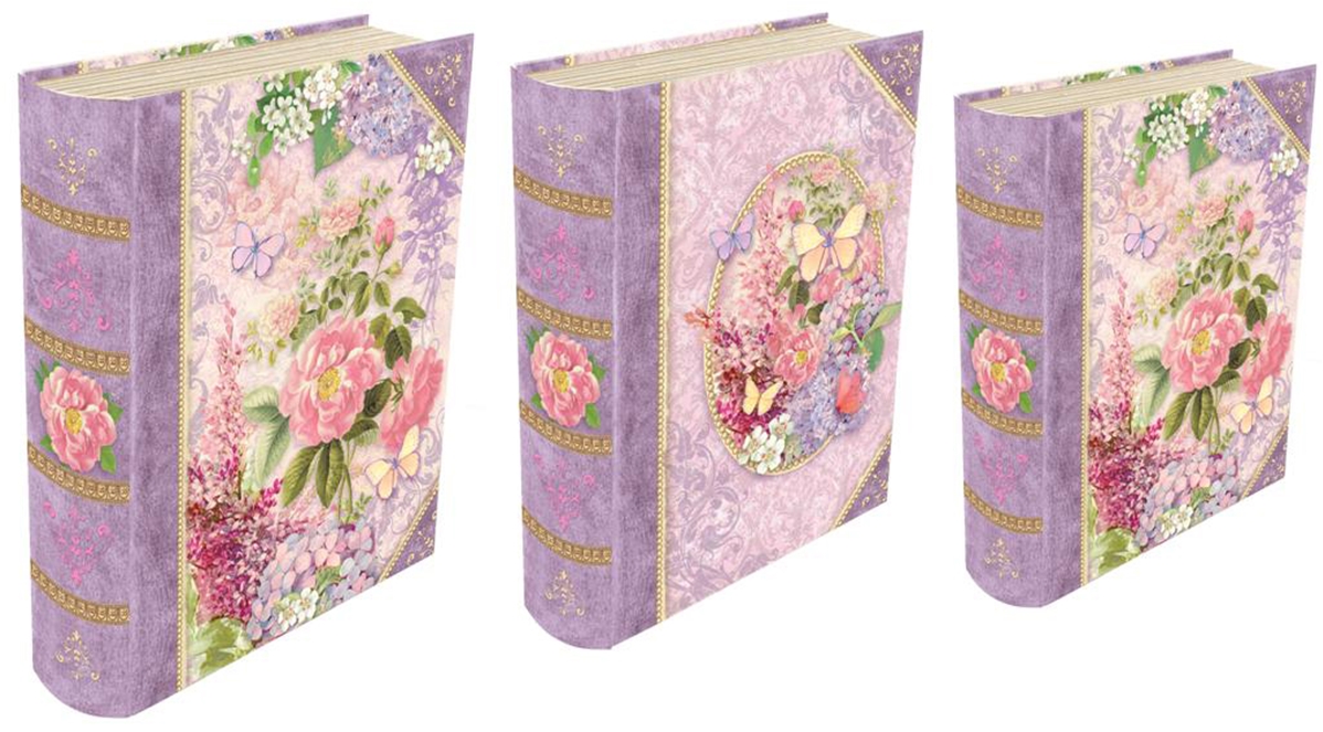 Boîtes gigognes en forme de livres. Fermetures aimantées. Décor intérieur.