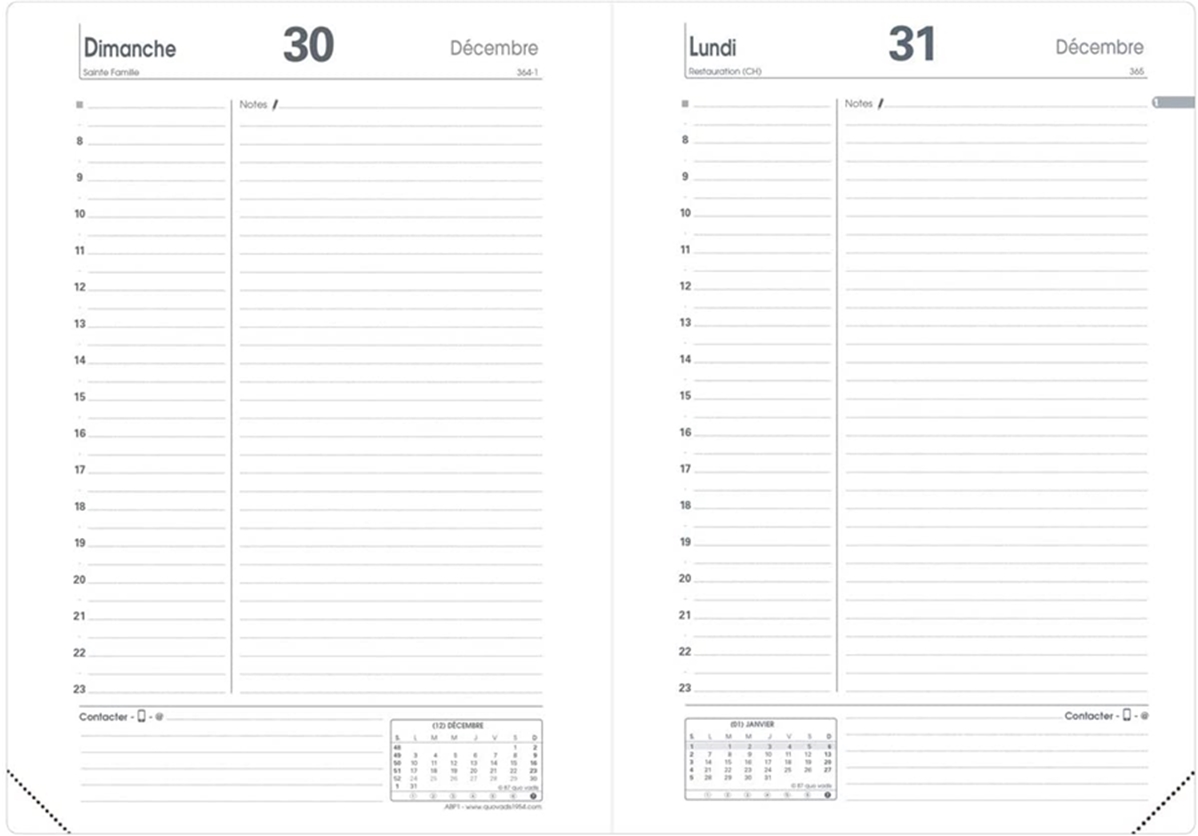 Pratique, vous aurez une page entière pour noter votre planning de 7 h à 23 h. La mise en page a été pensée pour que vous puissiez organiser vos rendez-vous par heure. Vous aurez même un espace pour noter les détails.