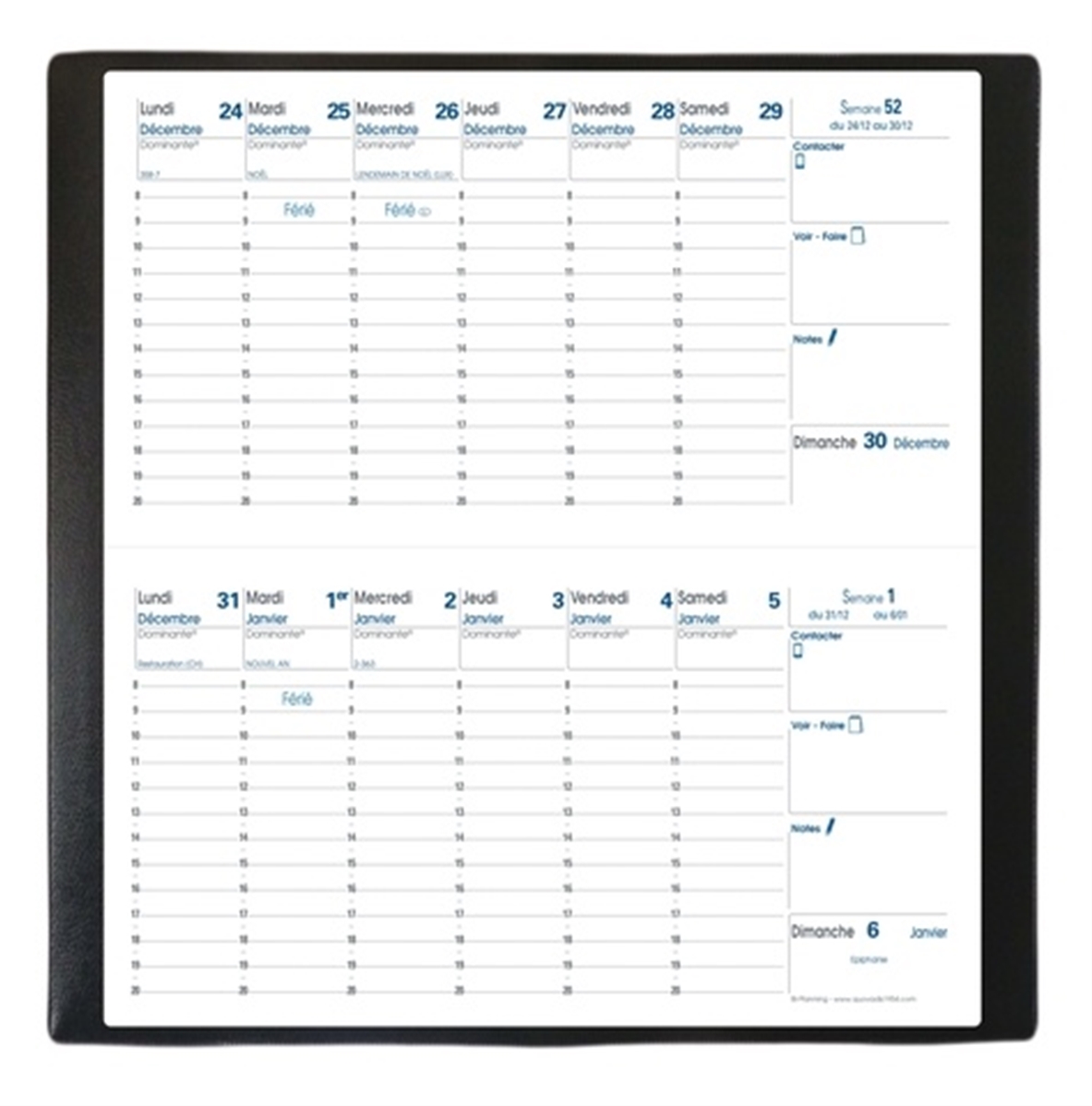 Format 88 x 170 mm. Une semaine par page à l'italienne.