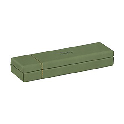 Le RHODIA Plumier en simili cuir sauge proposé par Papeterie Française comprend un couvercle rabattable avec le logo RHODIA embossé, des dimensions de 210 x 55 x 30 mm, et une finition en simili cuir de haute qualité. La couleur sauge lui donne une apparence moderne et fraîche.