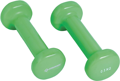 noyau en fonte, gaine en vinyle résistant et facile à teniren main, insensible à la sueur et aux rayures, facile ànettoyer,contenu : 2 pièces-960004
