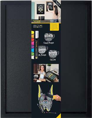 Securit Ardoise murale WOODY, avec cadre en bois, noir