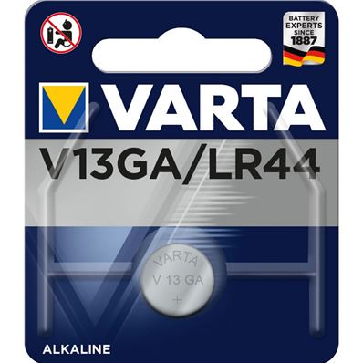 VARTA pile bouton alcaline "Electronics", V13GA (LR44), 1,5 volt, 125 mAh, diamètre de la pile: 11,6 mm, Hauteur: 5,4 mm